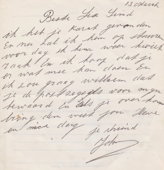 I found one more letter from John addressed to me that I had forgotten. It also had to do with stamps, but I forgot the circumstances. I will have the letter posted with the story, including a translation into English, but without the spelling mistakes.