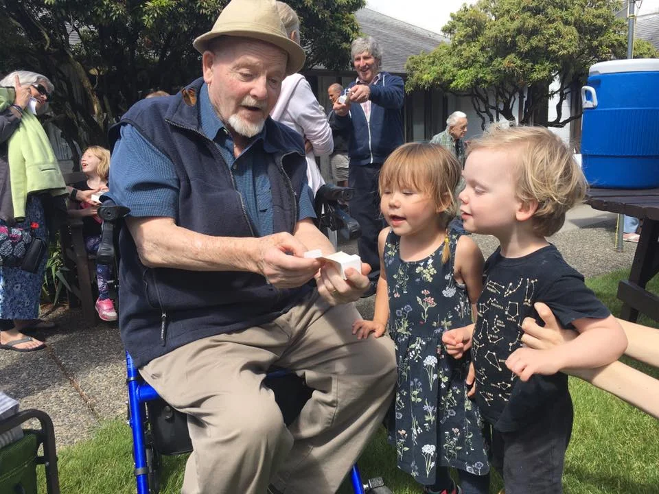 Since last year the release of butterflies was added to the ceremony and both activities were much appreciated by residents and the many guests alike. Two of my granddaughters, Katie and Megan with their children joined me.